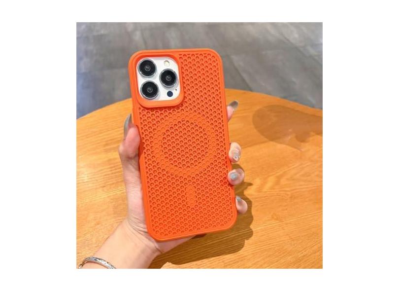 Capa luxuosa de dissipação de calor para iPhone 15 14 13 12 Pro Max Plus 11 Carregador sem fio respirável capa de cor sólida, laranja, para iPhone 14 Pro