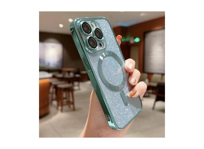 Capa luxuosa de telefone com carga sem fio galvanizada, para iphone 14 13 12 11 pro max plus, capa macia com glitter, verde claro, para iphone 13pro