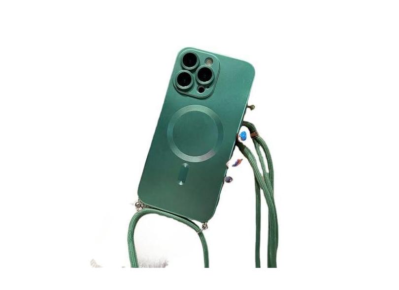 Capa magnética de cordão com alça crossbody para iPhone 15 14 13 11 12 Pro Max Plus XS X XR Capa traseira macia de silicone, verde escuro, para iPhone XS Max