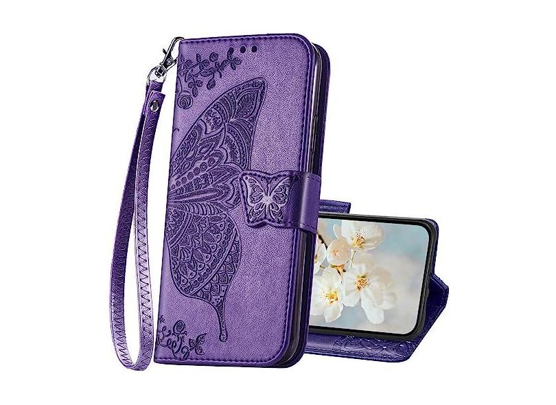 Capa magnética de couro borboleta para iPhone 15 Pro, capa flip com suporte de couro em relevo de borboleta, porta-cartões de crédito, carteira para celular para iPhone 15 Pro, capa fólio para