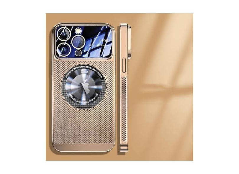 Capa magnética de dissipação de calor para iPhone 13 11 12 14 15 Pro Max Lente de vidro de malha galvanizada Ampliar logotipo Capa de telefone, dourada, para iPhone 15 ProMax