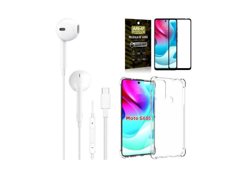 Capa Moto G60s + Fone De Ouvido Tipo C + Película 3D - Armyshield