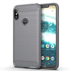 Capa para Motorola Moto One Power 2, capa de material de fibra de carbono, suave antiderrapante, macia, anti-impressões digitais, capa totalmente protetora para Motorola Moto One Power 2