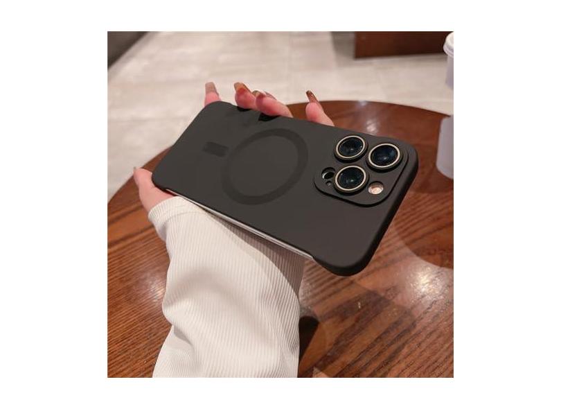 Capa sem moldura ultrafina para iPhone 15 Pro Max 14 Plus 13 12 Proteção de filme de lente de carregamento sem fio Capa dura para PC, preta, para iPhone 15 Pro