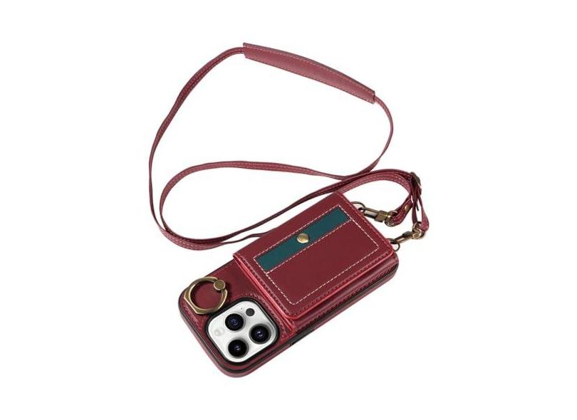 Carteira de anel crossbody com suporte de cartão capa de telefone para iphone 15 14 13 12 11 pro max xs xr x 7 8 plus capa de couro, vermelho, para iphone xr