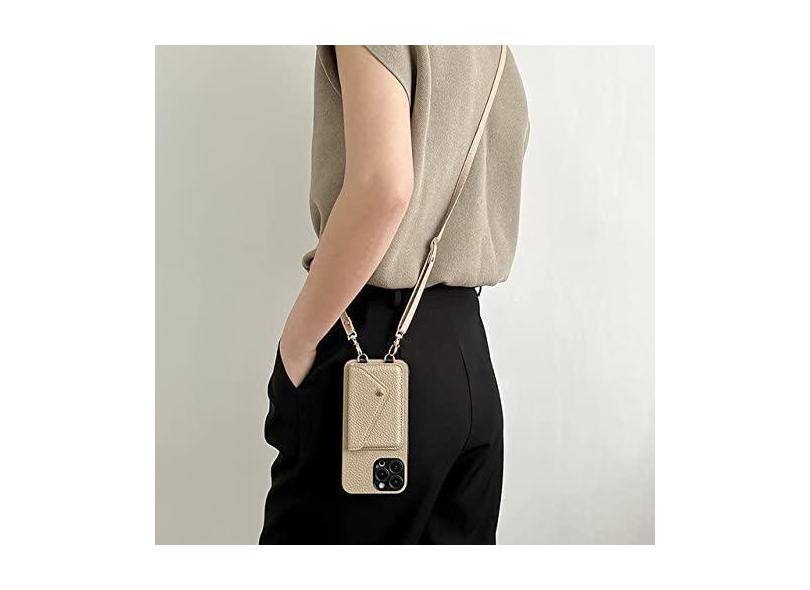 Carteira de couro com alça transversal de luxo para iPhone 13 11 12 11pro 14pro max 12mini x xr xs titular do cartão capa do telefone, cáqui, para iPhone 14pro