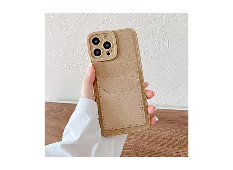 Carteira quadrada de couro de luxo capa de cartão de silicone para iPhone 13 12 11 14 Pro Max XS XR X 8 7 Plus SE capa, cáqui, para iPhone X