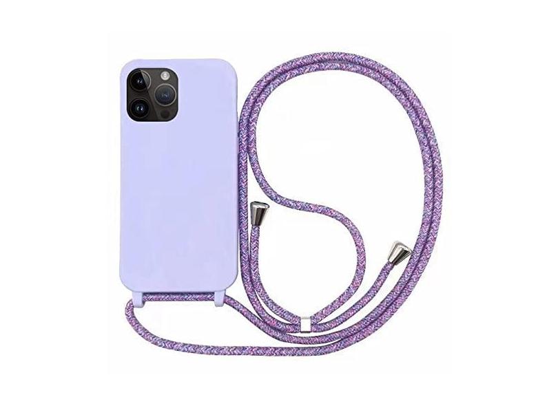 Colar tiracolo alça cordão capa de telefone para iPhone 14 Plus 13 12 Mini 11 Pro XS Max XR X Silicone Soft TPU Capa traseira, Roxo, Para iPhone X ou XS