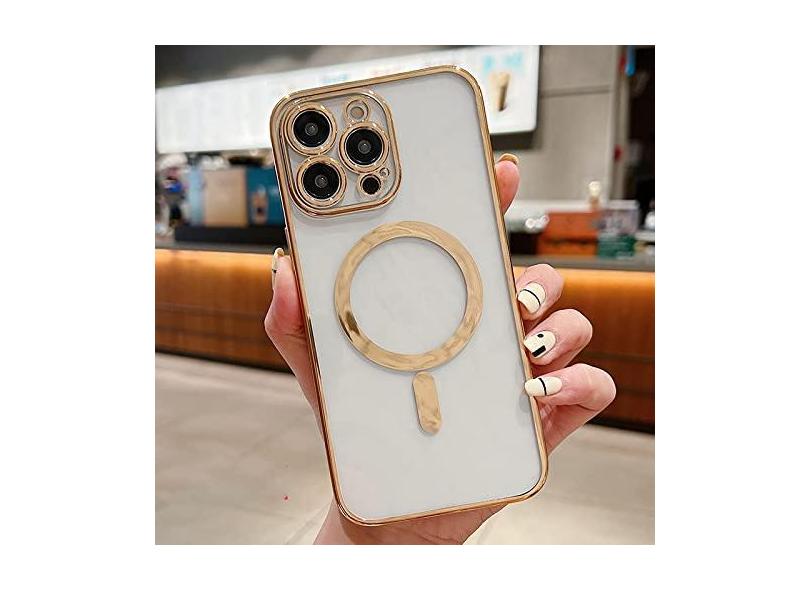 Estojo de carga magnética sem fio transparente de revestimento de luxo para iPhone 11 13 12 14 Pro XS Max X XR 8 Plus Capa de silicone macio, ouro, para iPhone 13Pro Max