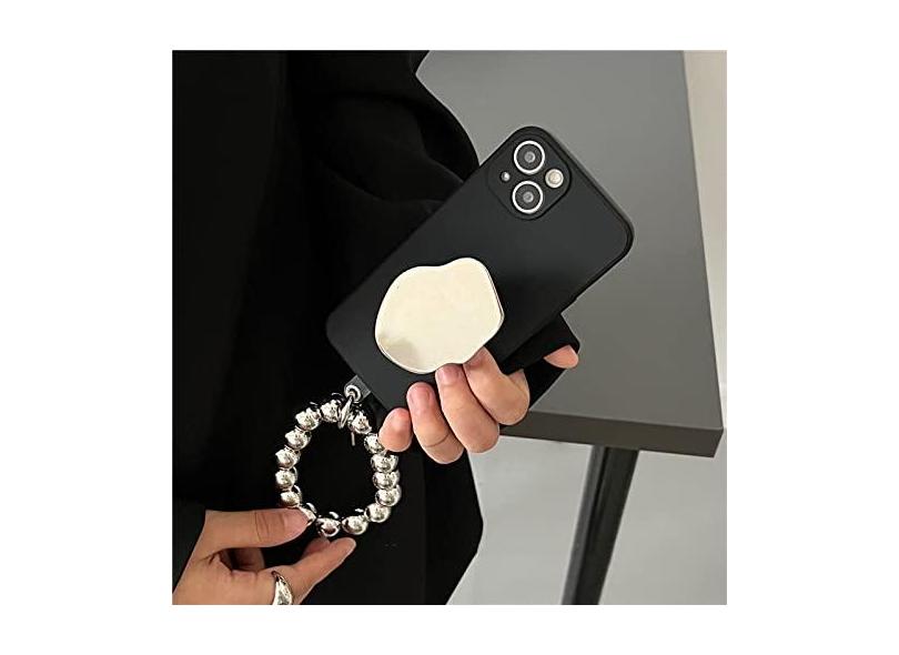 Estojo macio com suporte de espelho para iPhone 14 Pro Max 13 12 Pro 11 XR XS 7 8 Plus SE Pulseira banhada a prata Capa para chaveiro, A, para iphone 7