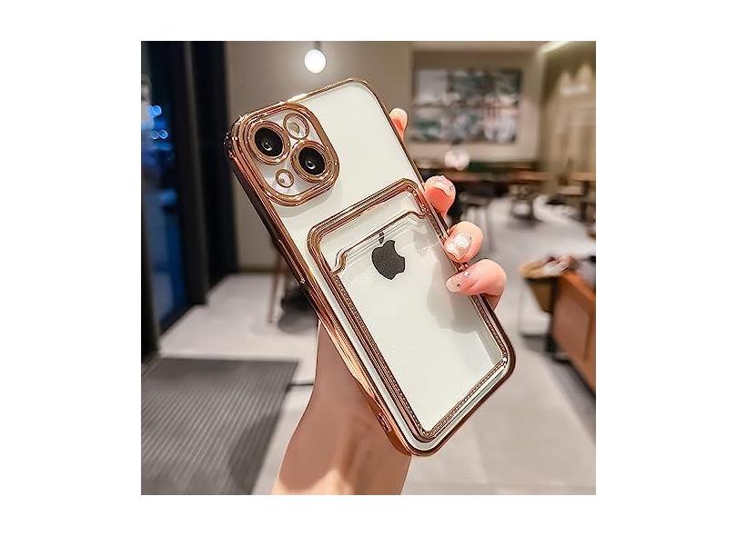 Estojo porta-cartões transparente galvanizado para iPhone 13 11 12 14 Pro Max 14 Plus Bolso para fotos Capa de silicone à prova de choque, ouro, para SE2020 ou SE2022