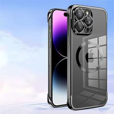 Estojo sem moldura transparente galvanizado para iPhone 14 Pro Max 12 13 Pro Max 14 Plus Capa magnética de carregamento sem fio, preta, para iPhone 13 ProMax