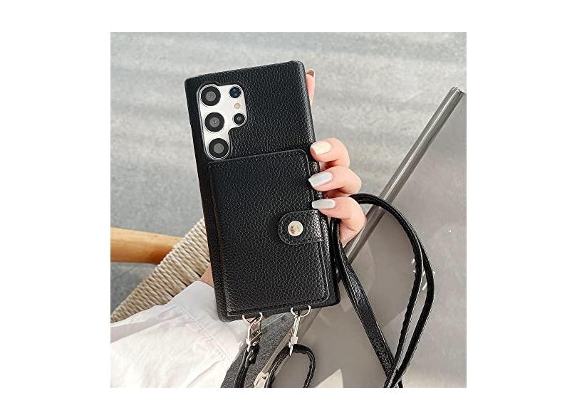 Estojo tipo carteira tiracolo de couro para Samsung S23 Ultra S22 Plus S21 S20 S10 S9 S8 Note 20 10 Pro 9 Capa de cartão, preto, para S9 Plus