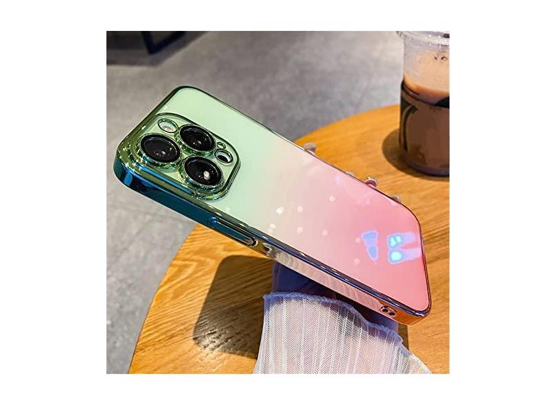 Estojo transparente com gradiente de revestimento de luxo ultra fino para iPhone 14 12 13 Pro Max 14Plus Capa de proteção com película de lente galvanizada, verde escuro, para iPhone 12 Pro