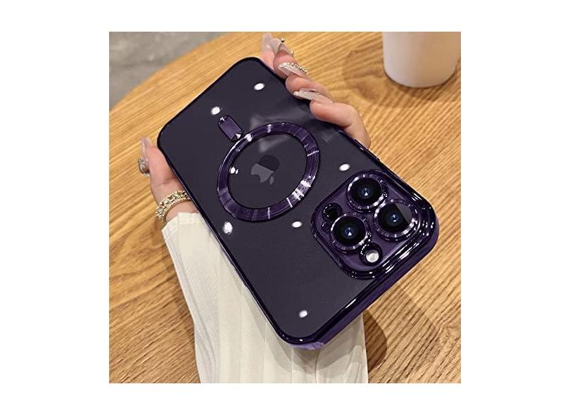 Estojo transparente de carregamento sem fio para iPhone 14 13 12 11 Pro Max X XR XS 7 8 Plus SE 2020 22 Mini capa macia, roxo escuro, para iPhone 14Plus