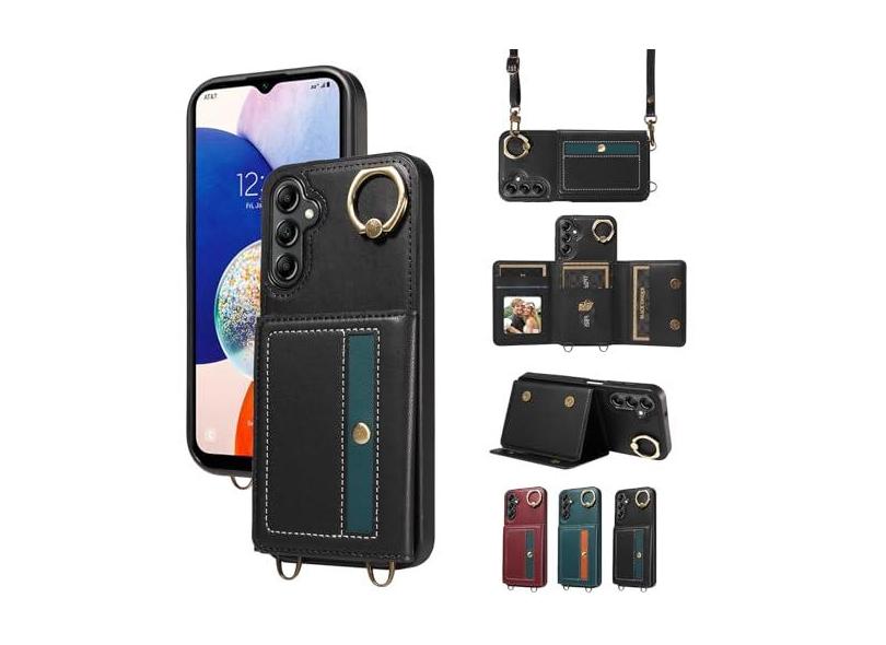 Furill Capa de telefone para Samsung Galaxy A14/M14 5G capa carteira com alça de ombro transversal e porta-cartão de couro bolso de crédito 360° suporte giratório acessórios para celular A 14 4G 14A