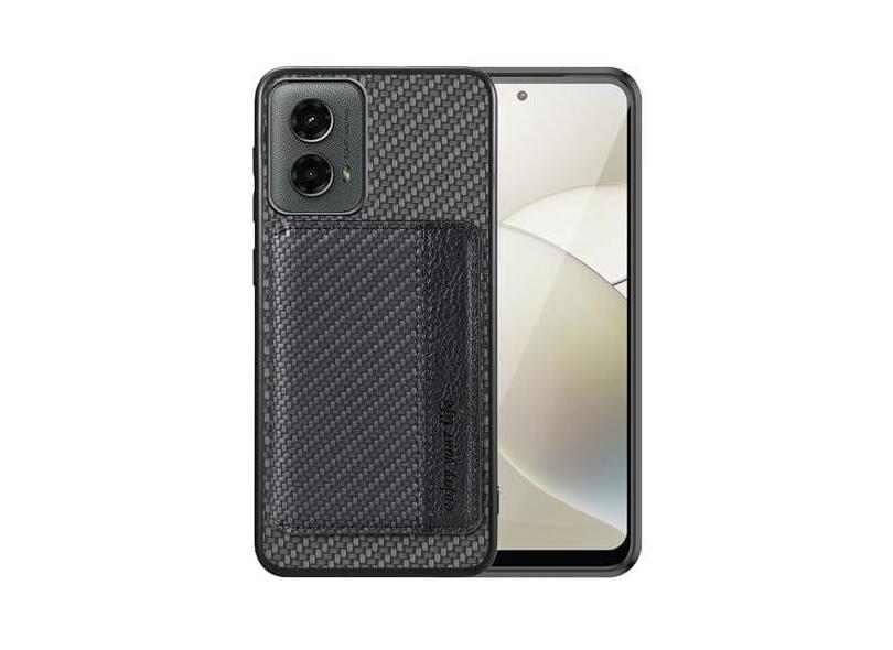 Futanwei Capa carteira para Motorola Moto G 5G 2024 com suporte para cartão [design padrão de fibra de carbono] [2 compartimentos para cartão de crédito embutidos] [fecho magnético oculto] capa