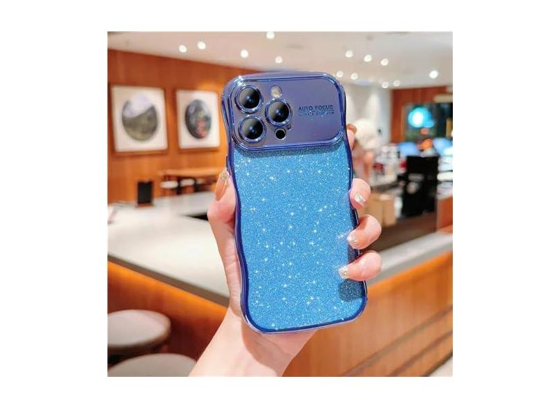 Galvanoplastia onda silicone para iphone 15 14 plus 13 12 11 pro max glitter pó macio à prova de choque capa de prevenção de queda, azul, para iphone 12