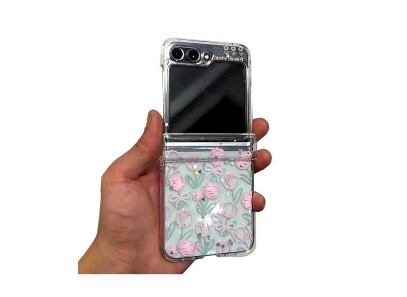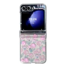 GO-VOLMON Capa feminina fofa para Samsung Galaxy Z Flip 5 estampa de flores Kawaii, capa transparente para Galaxy Z Flip 5 protetor de dobradiça, glitter em pó adorável design floral capa feminina
