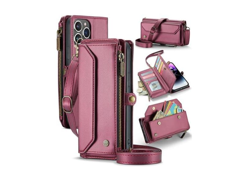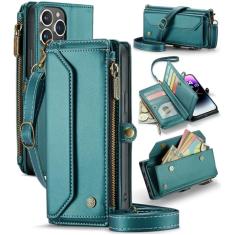 GooodiDEAR Capa para iPhone 14 Pro Max, carteira transversal para celular com suporte de bloqueio RFID, compartimentos para cartão de carregamento sem fio, bolsa de ombro de couro PU, alça ajustável,