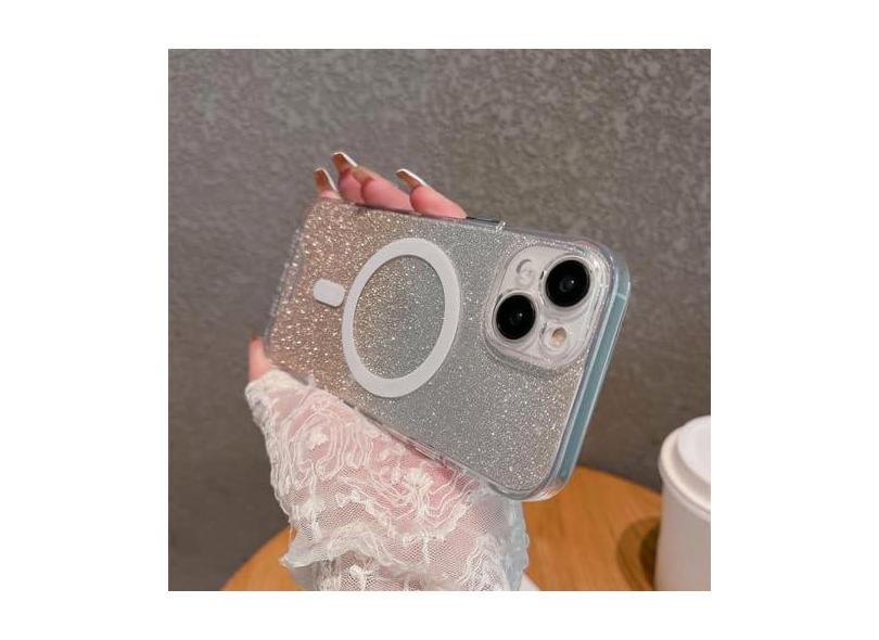 Gradiente glitter casos magnéticos caso de carga sem fio para iphone 14 13 12 11 pro max xr x xs max 7 8 plus capa transparente, amarelo, para iphone xs