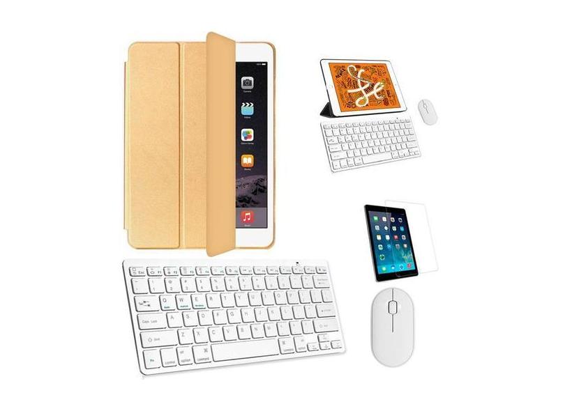 Kit Capa Smart Case Dourado / Teclado e Mouse branco e Película para i