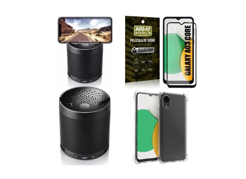 Kit Capinha Samsung A03 Core + Som Bluetooth Potente Q3 + Película Vid