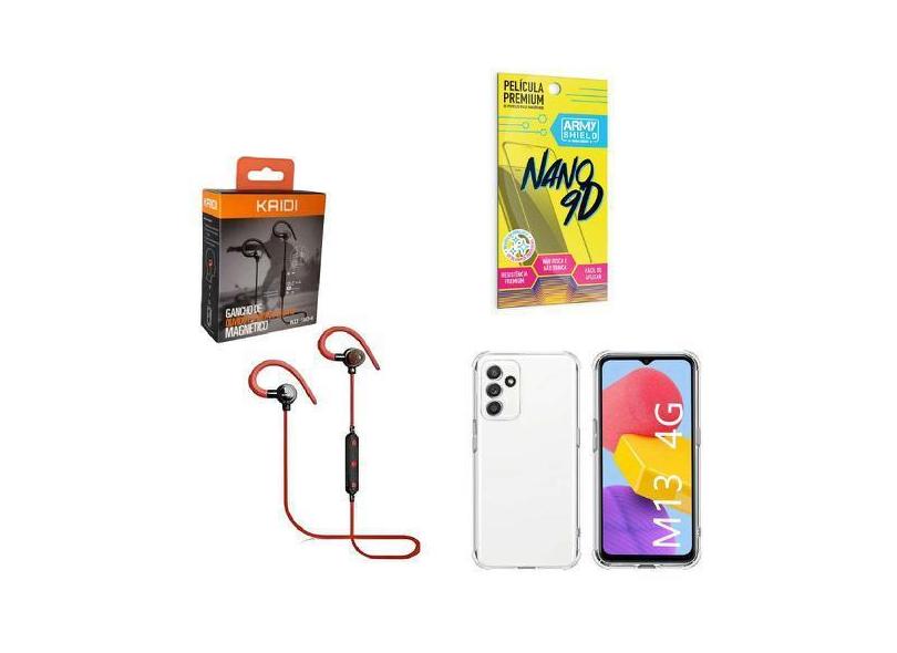 Kit Capinha Samsung M13 Fone Bluetooth Esportivo E Película De Cerâmic