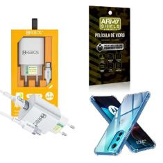 Kit Carregador Turbo + Capinha Motorola Edge30 + Película 3D