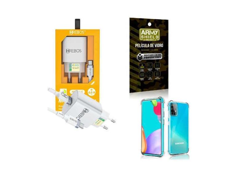 Kit Carregador Turbo + Capinha Samsung A52 + Película 3D - Hrebos