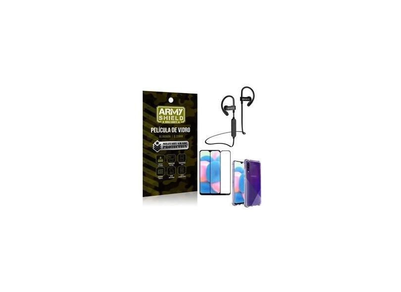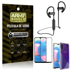 Kit Fone Bluetooth Hrebos HS188 Galaxy A30s + Película 3D + Capa Anti Impacto - Armyshield