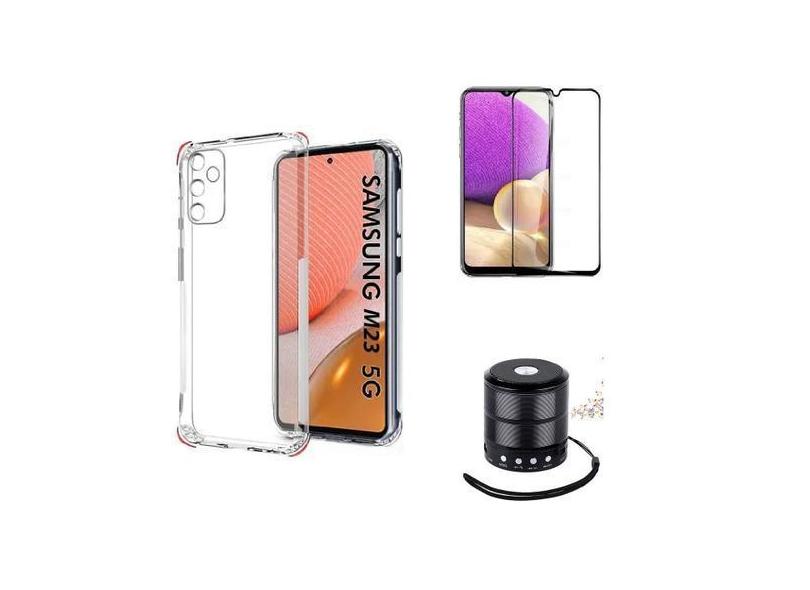 Kit Mini Som Bluetooth Samsung M23 5G + Capa Anti Impacto + Película V