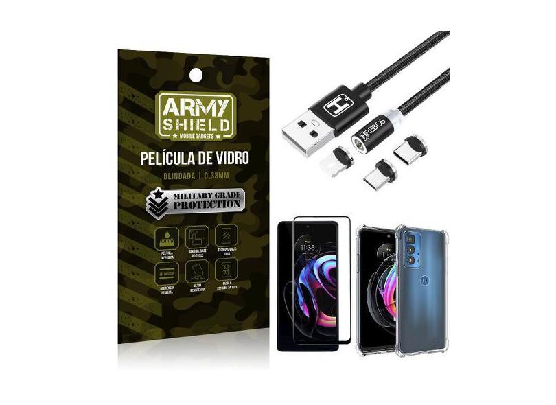 Kit Moto Edge 20 Pro Cabo Magnético 2 Metros + Capinha + Película 3D -