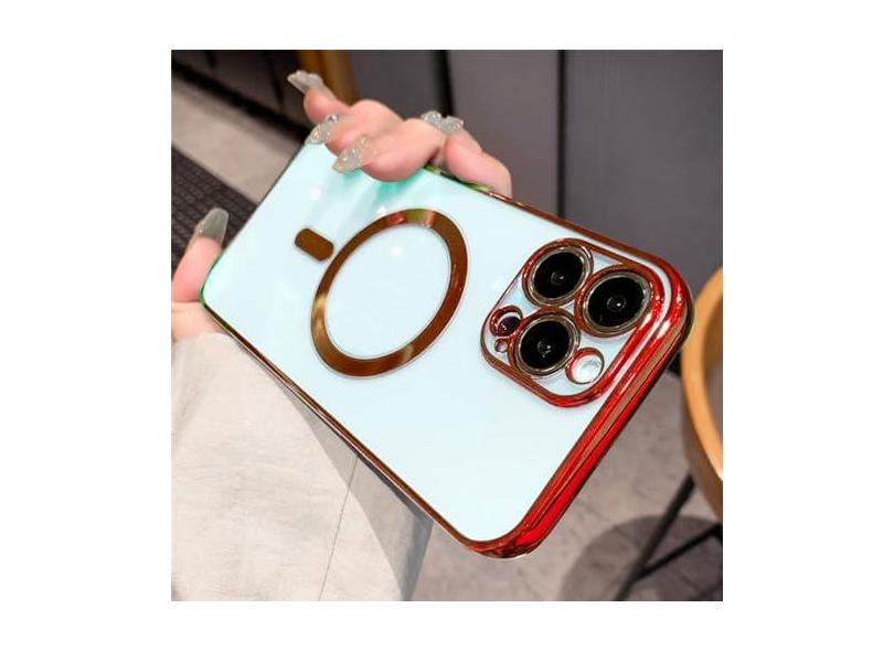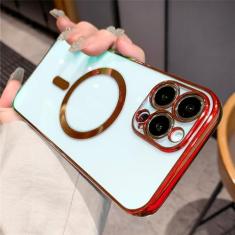Luxo chapeamento claro magnético caso de carga sem fio para iphone 14 13 12 11 pro max x xr xs 8 plus capa de silicone macio, vermelho, para iphone 14