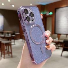 Luxo galvaniza caso de telefone de carga sem fio para iphone 14 13 12 11 pro max plus macio pára-choques glitter capa, roxo, para iphone 14pro max