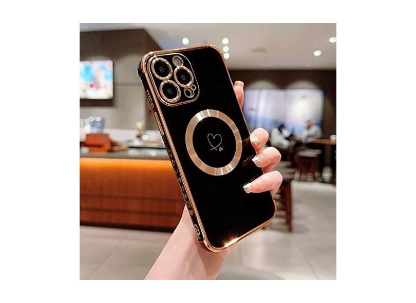 Luxo magnético amor coração caso de telefone para iphone 15 14 13 12 11 pro max plus casos de carregamento sem fio capa, preto, para iphone 15plus