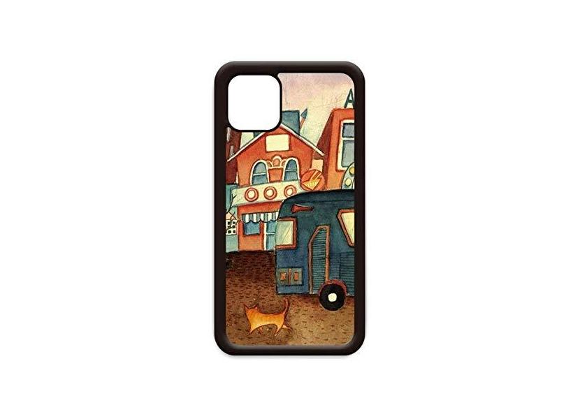 Miaoji Pintura Aquarela Cat City Bus para iPhone 12 Pro Max Capa para Apple Mini Mobile Case