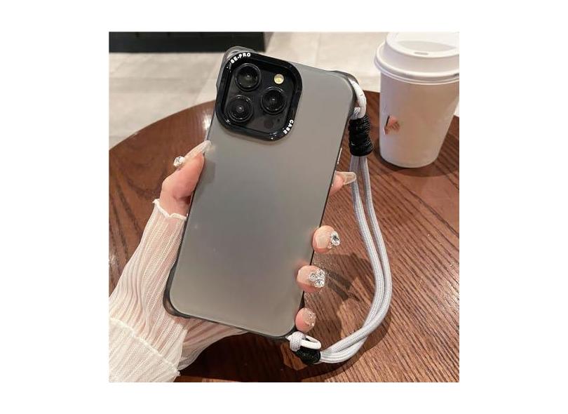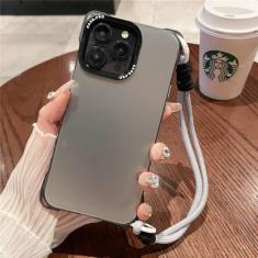 Moda fosca glitter alça de pulso cordão capa de telefone para iPhone 15 11 12 13 14 Pro Max Plus Carry Hand Band Bumper Cover, preta, para iPhone 13 Pro