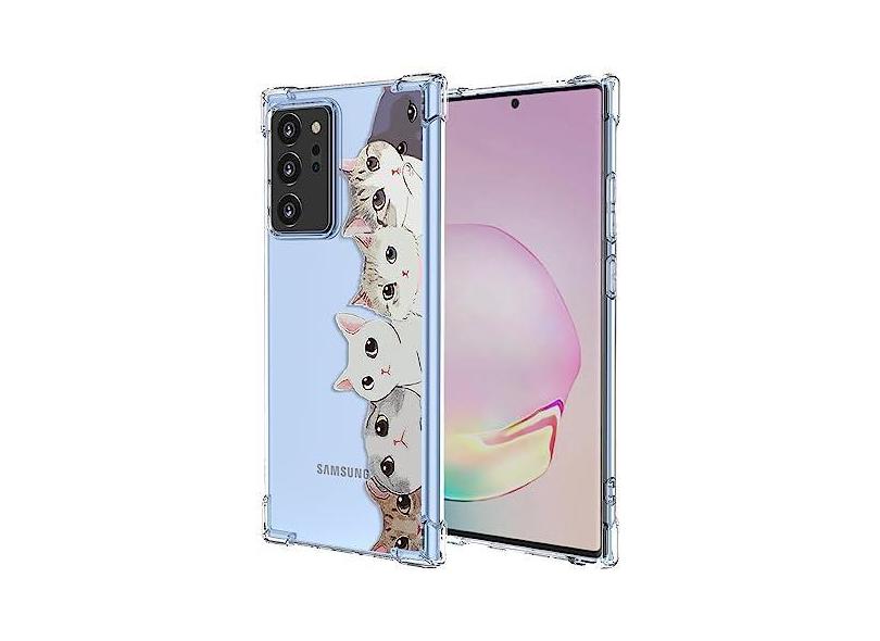 OEURVQO Capa para Galaxy Note 20 Ultra 5G transparente com estampa de gato fofo desenho animal TPU macio à prova de choque antiarranhões capa protetora para celular para Samsung Galaxy Note 20 Ultra
