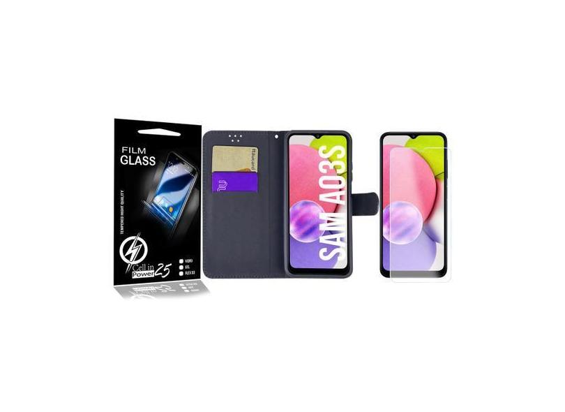 Película Vidro + Capa Carteira PRETA Galaxy A03S A037 6.5 - Cell In Po