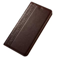 POCHY Capa para iPhone 15 Pro Max/15 Pro/15 Plus/15, capa de couro bovino, carteira de luxo feminina flip magnética capa de proteção, marrom, 15ProMax