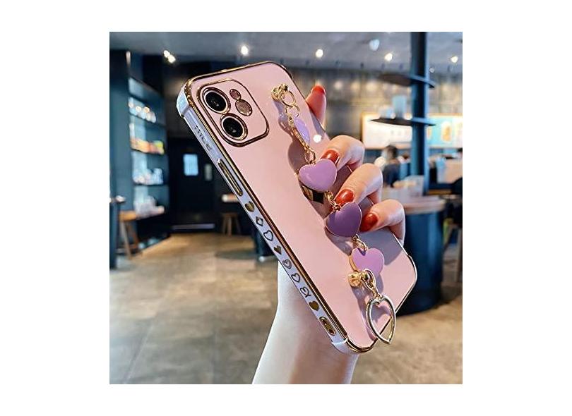 Pulseira macia amor coração capa de telefone para iphone 11 12 13 pro max xs x xr 7 8 plus mini se 2020 pára-choques galvanizado capa traseira, roxo, para iphone 13