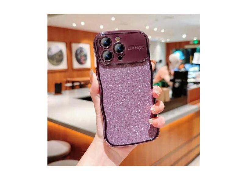 Silicone de onda de galvanoplastia para IPhone 15 14 Plus 13 12 11 Pro Max Glitter Powder Capa macia à prova de choque para prevenção de quedas, roxa, para iPhone 11Pro Max