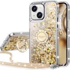 Silverback Capa para iPhone 15, capa protetora com glitter holográfico líquido em movimento com suporte, capa protetora de anel de diamante brilhante para meninas e mulheres para iPhone 15 de 6,1
