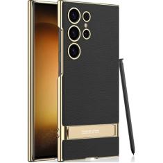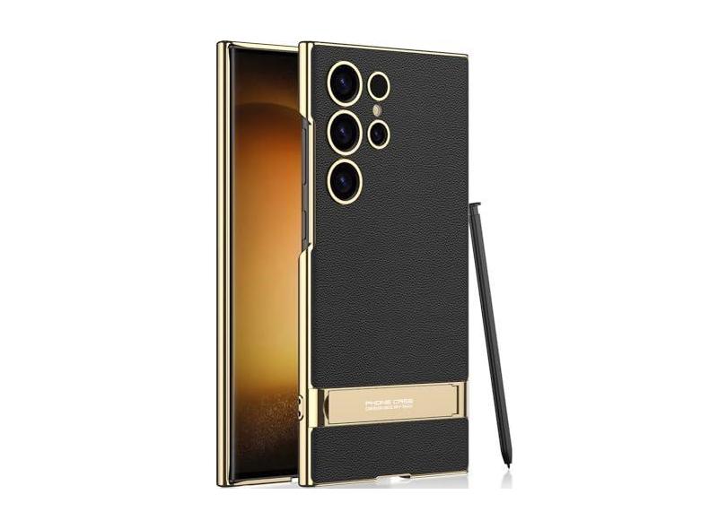 SOUTEM Capa de couro ultra vegano para Samsung Galaxy S23 com suporte ajustável de 4 modos, cabo macio e flexível, luxuoso, vegano, fino, protetor à prova de choque para Samsung Galaxy S23 Ultra