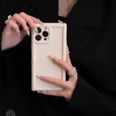 Suporte quadrado de luxo com suporte de cor sólida capa de telefone com sensação de pele para iPhone 11 12 13 14 15 Pro Max capa de acrílico à prova de choque, branca, para iPhone 13 Pro