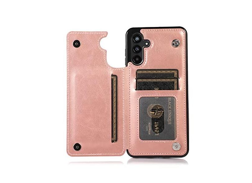 UEEBAI Capa para Samsung Galaxy A13 5G/A04s, capa de couro PU de luxo com [dois fechos magnéticos] [compartimentos para cartões] Função de suporte durável à prova de choque macio TPU capa carteira
