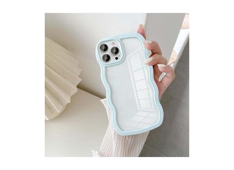 UEEBAI Capa transparente com moldura ondulada para iPhone 14 Pro de 6,1 polegadas, capa de telefone ondulada fofa para meninas, ajuste fino, à prova de choque, capa macia e bonita para mulheres - azul