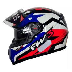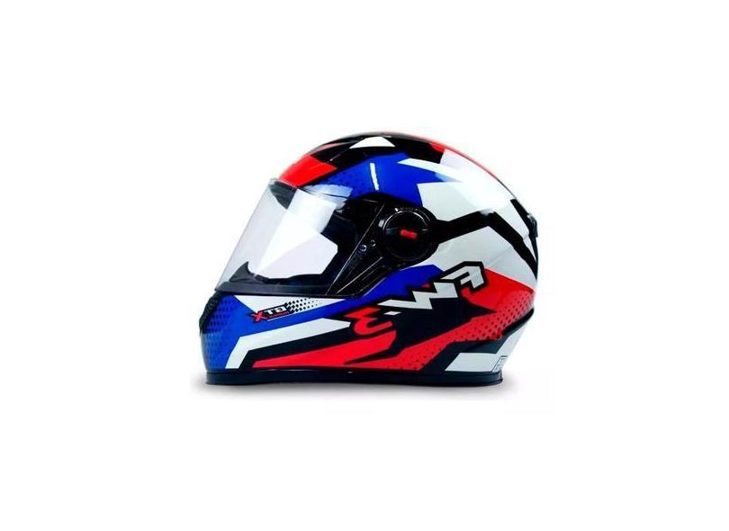 Capacete Moto Fechado GTX Super Vermelho com Azul/Branco Viseira Crist