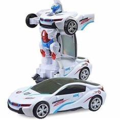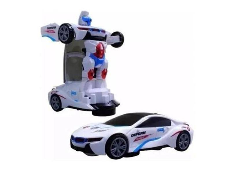 Brinquedo Carrinho Vira Robô Luz Som Transformers Branco Bate E Volta